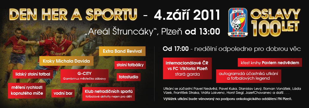 Popis akce: Den her a sportu - Oslavy 100 let od založení klubu FC Viktoria Plzeň